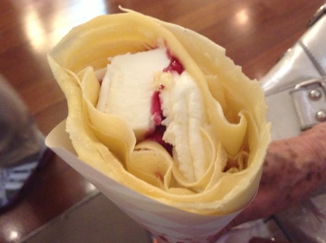 レストランズパークファンサイトファンサイト参加中新宿タカシマヤ タイムズスクエア レストランズパーク12階 ドナテロウズ 大勢の方がいらしていました。店内は座席数が少ないので お店の前の椅子に座り人気一番のクレープブルーベリーレアチーズを頂きました。